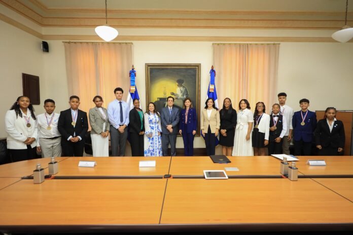 Santo Domingo, D.N.— Los estudiantes galardonados con el XI Premio al Mérito Escolar fueron recibidos este lunes por la vicepresidenta de la República Dominicana, Raquel Peña, en el Palacio Nacional, como parte de la agenda oficial de su visita cultural al país.