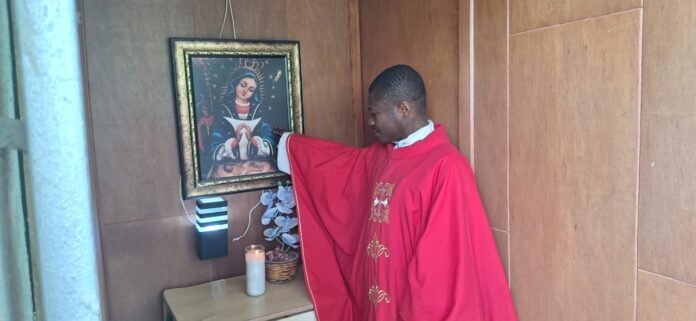 El párroco, director del Colegio Católico San Miguel Protector del Estudiante, hace un llamado urgente a Betty Geronimo, para el arreglo de las calles.